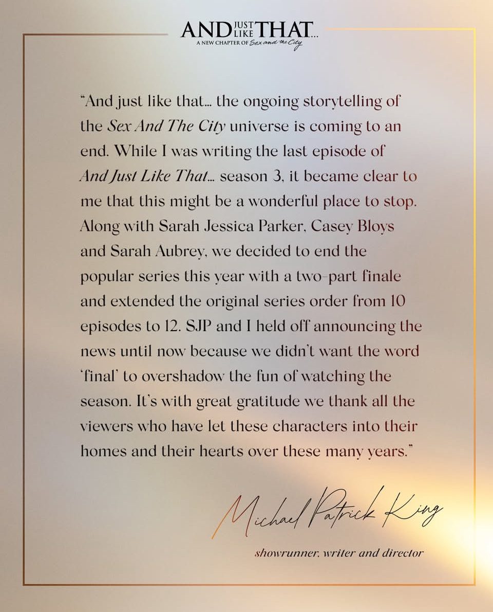 La confirmación de que no habrá cuarta temporada llegó de manera sorpresiva a través de una publicación de Instagram de Michael Patrick King. Según explicó, el equipo sintió que la historia había encontrado su punto de cierre natural, y guardaron la noticia en secreto para preservar la experiencia de los fans. La decisión fue recibida con sentimientos encontrados: tristeza por la despedida, pero gratitud por haber acompañado este viaje televisivo de más de 27 años.