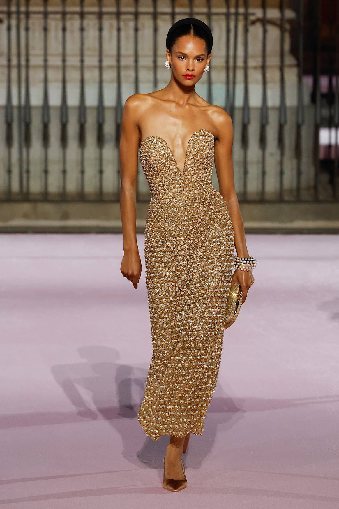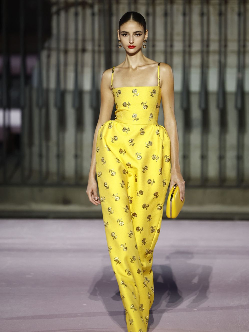 El protagonismo también estuvo en las estructuras fuertes pero femeninas, que definieron la silueta de la temporada: hombros marcados suavizados con cinturas delicadas, faldas de gran volumen balanceadas con tops ligeros y vestidos que alternaban dramatismo arquitectónico con movimiento fluido. Una combinación que resaltó la idea de la mujer Carolina Herrera como poderosa, elegante y profundamente femenina.