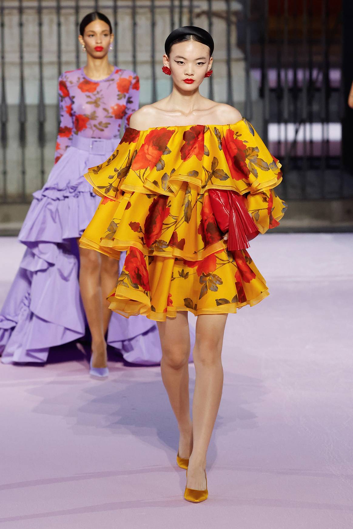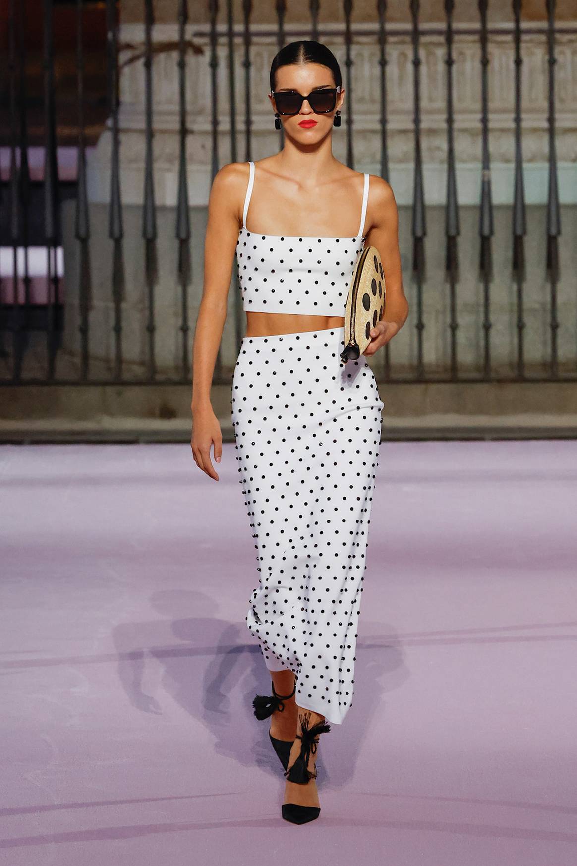 La colección fue una verdadera carta de amor a España. Estampados de lunares, flores exuberantes, bordados minuciosos y capas castellanas reinterpretadas dieron vida a looks que respiraban identidad cultural. Wes Gordon tomó referencias de patrones tradicionales españoles, los amplificó y los llevó al terreno de lo contemporáneo, logrando piezas que fusionan raíces históricas con frescura global.