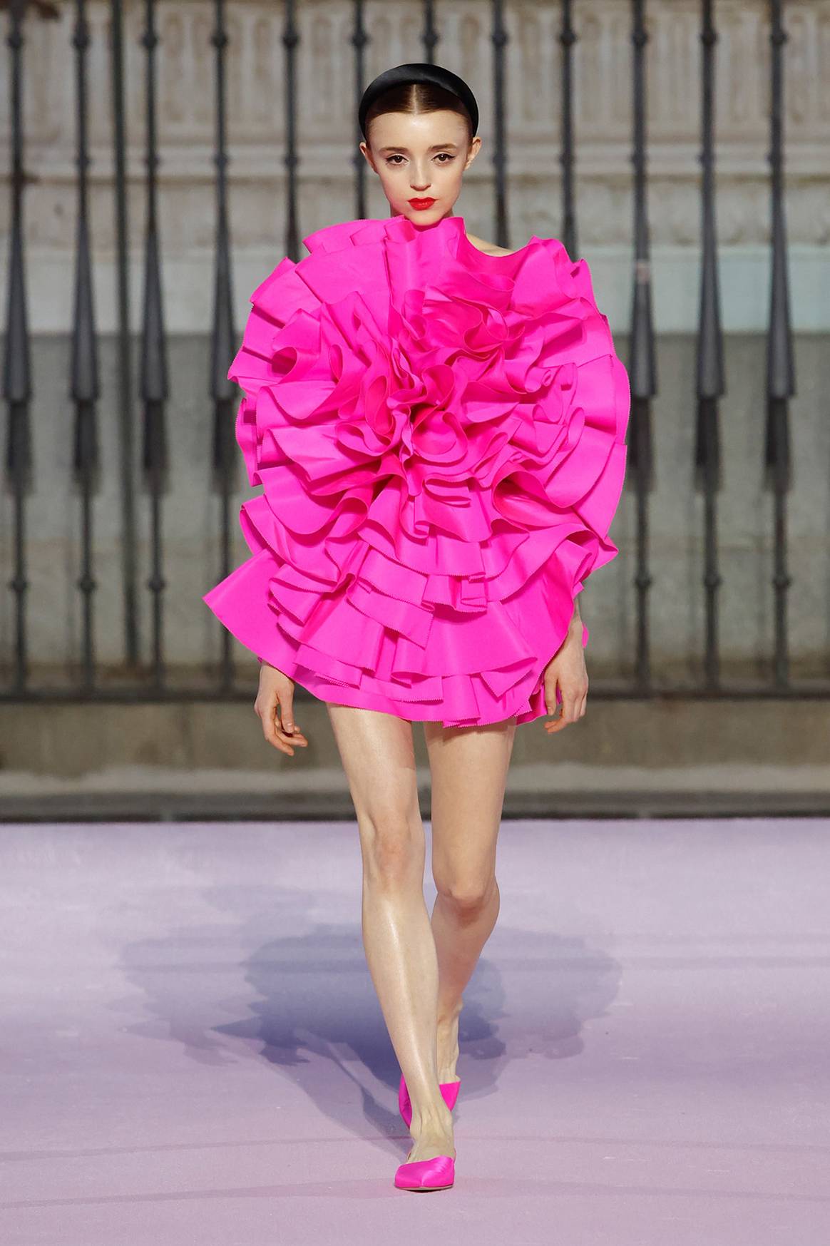 La participación de artesanos locales y colaboraciones con oficios tradicionales reforzaron el vínculo de la moda con la riqueza cultural de España. Todo acompañado por una atmósfera festiva, donde el rosa de la pasarela simbolizó una feminidad vibrante y contemporánea.