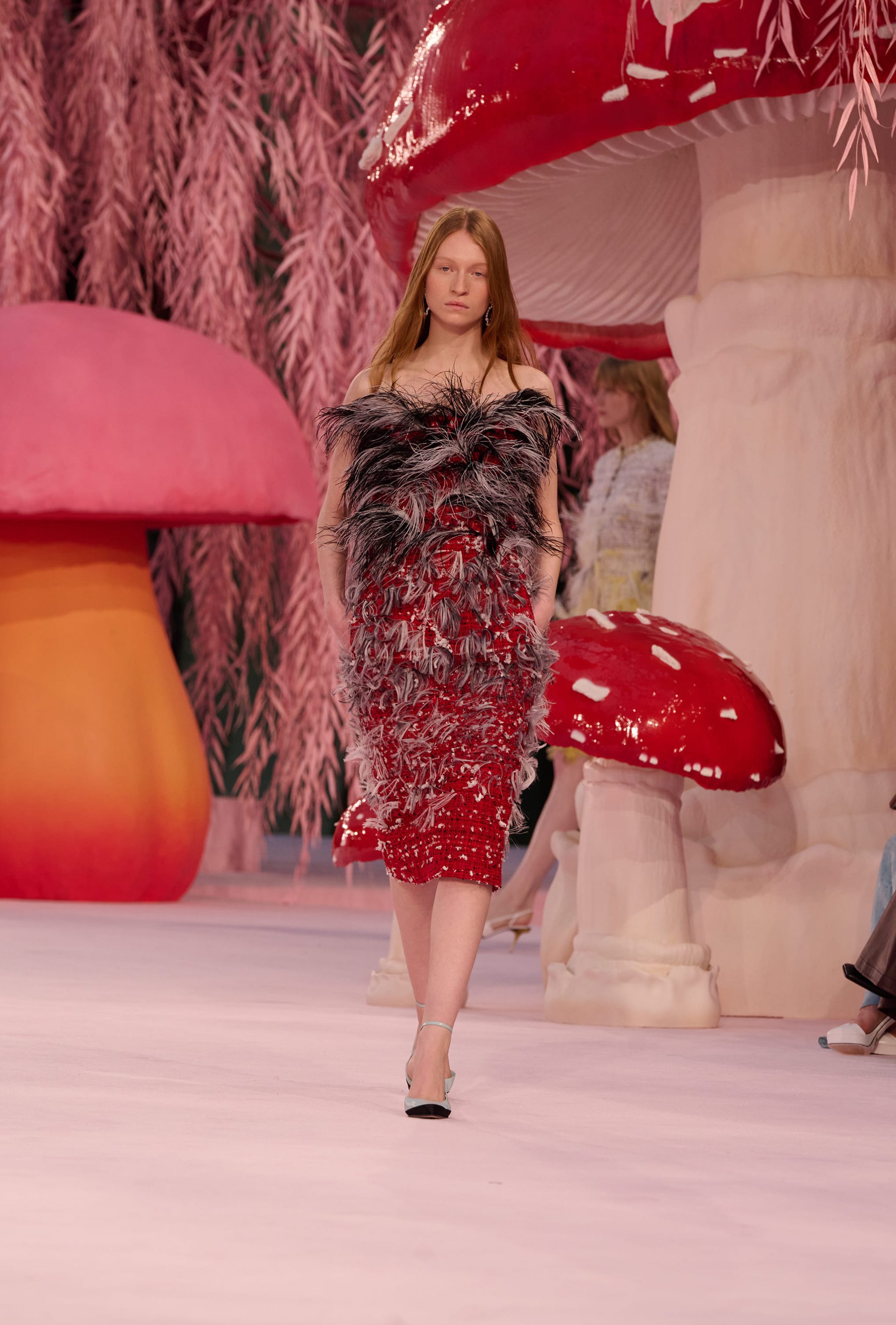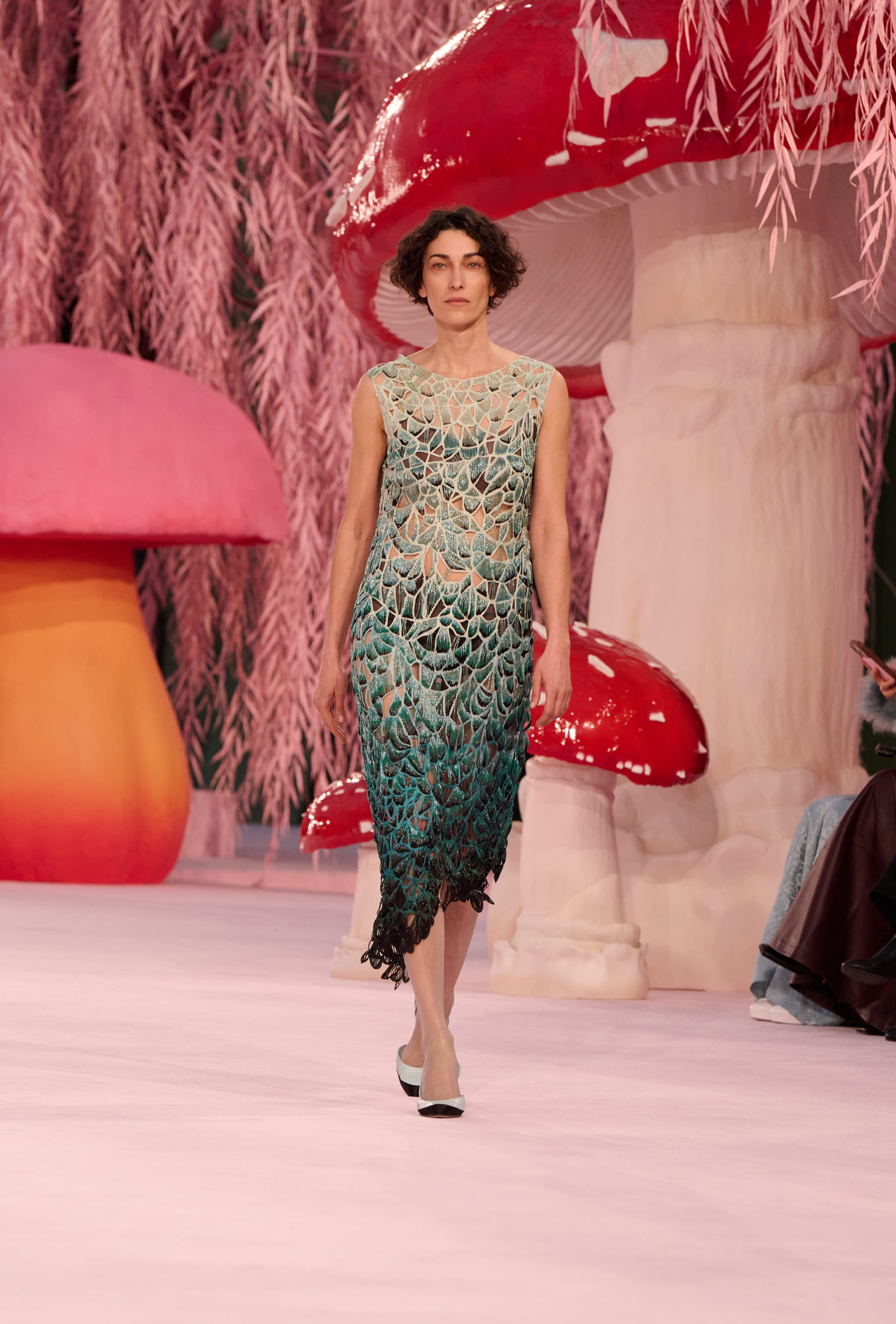 En escena, este vuelo se da en un bosque encantado. Hongos monumentales, sauces suspendidos en el tiempo. Las aves se reúnen, observan, conspiran y finalmente desaparecen. No hay final cerrado. Solo una sensación de libertad que se escapa suavemente, como la Alta Costura misma.