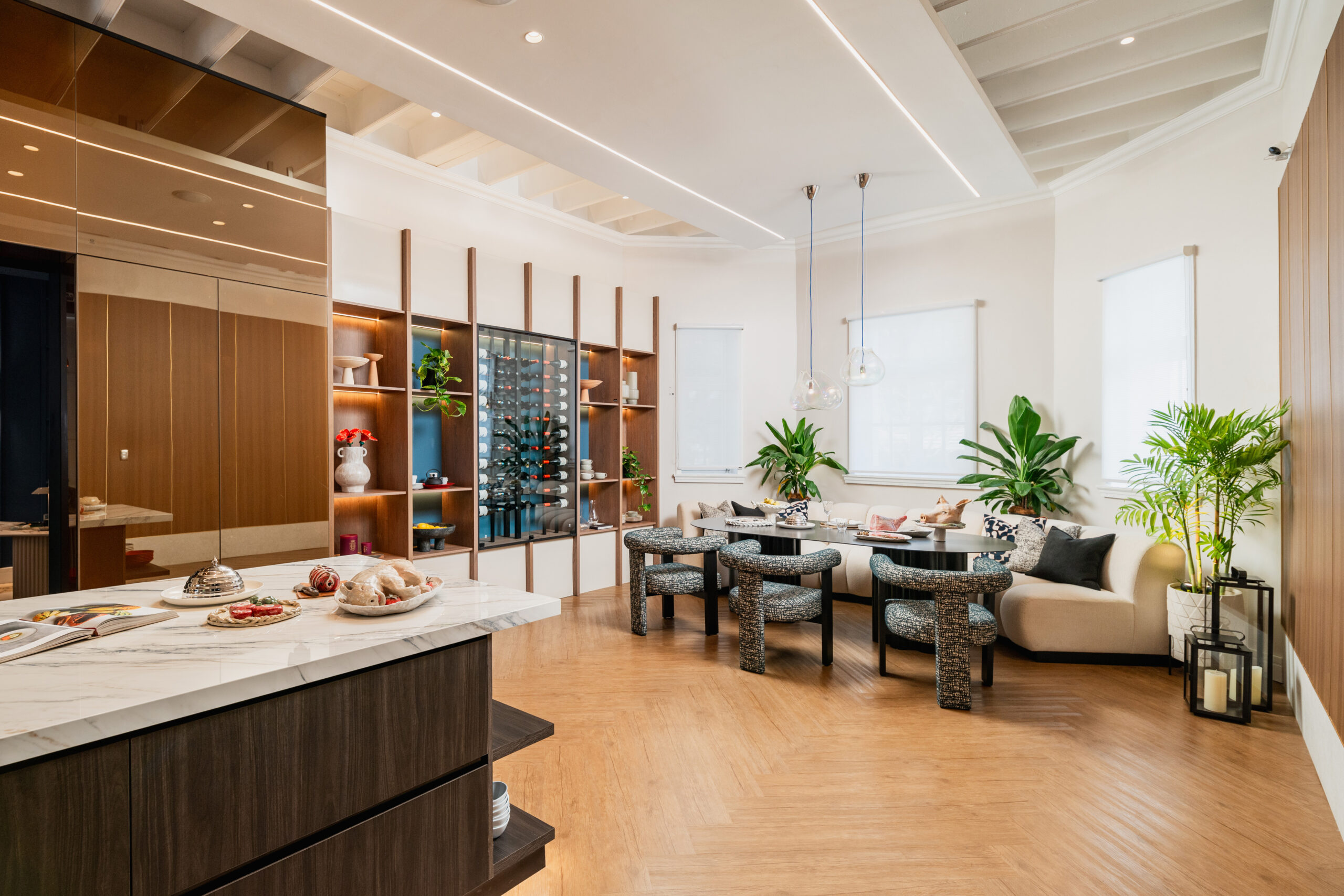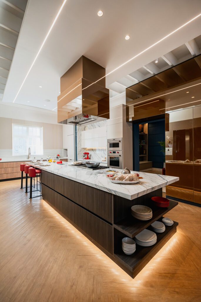 Este innovador proyecto redefine el concepto de cocina, convirtiéndolo en un refugio donde el diseño, la luz, el color y los materiales se unen para crear una sinfonía sensorial que alimenta el alma y despierta los sentidos. Desde el meticuloso diseño del espacio hasta la selección de muebles y electrodomésticos de vanguardia, cada elemento ha sido pensado para elevar la experiencia culinaria a nuevas alturas.