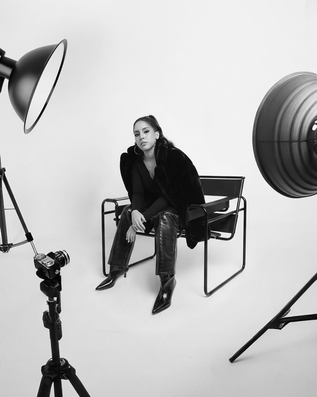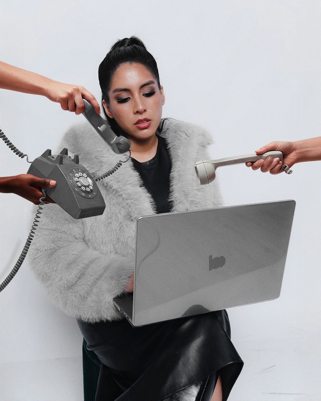 sino como convicción profesional. Es lo que ella llama “claridad visual”: una forma de comunicar sin ruido y con dirección. En esta sesión editorial, Marcela se rodea de materiales, texturas y herramientas creativas. No es una escenografía: es una declaración de principios. “El estilo no es pose, es criterio. Se construye a partir de decisiones conscientes”, afirma.