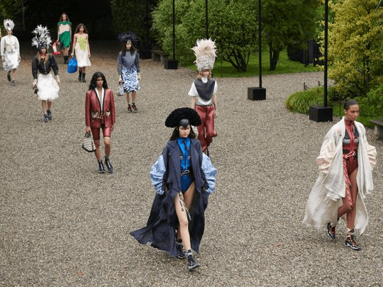 Esta colección está diseñada para ser una todoterreno, precisamente durante la presentación llovió haciendo una gran referencia mágica a la colección donde asistieron famosos como Cate Blanchett con un vestido gris hasta la rodilla con un escote pronunciado y una espalda completamente abierta. También asistieron embajadoras de Louis Vuitton, incluidas Alicia Vikander, Emma Stone y Jennifer Connelly.