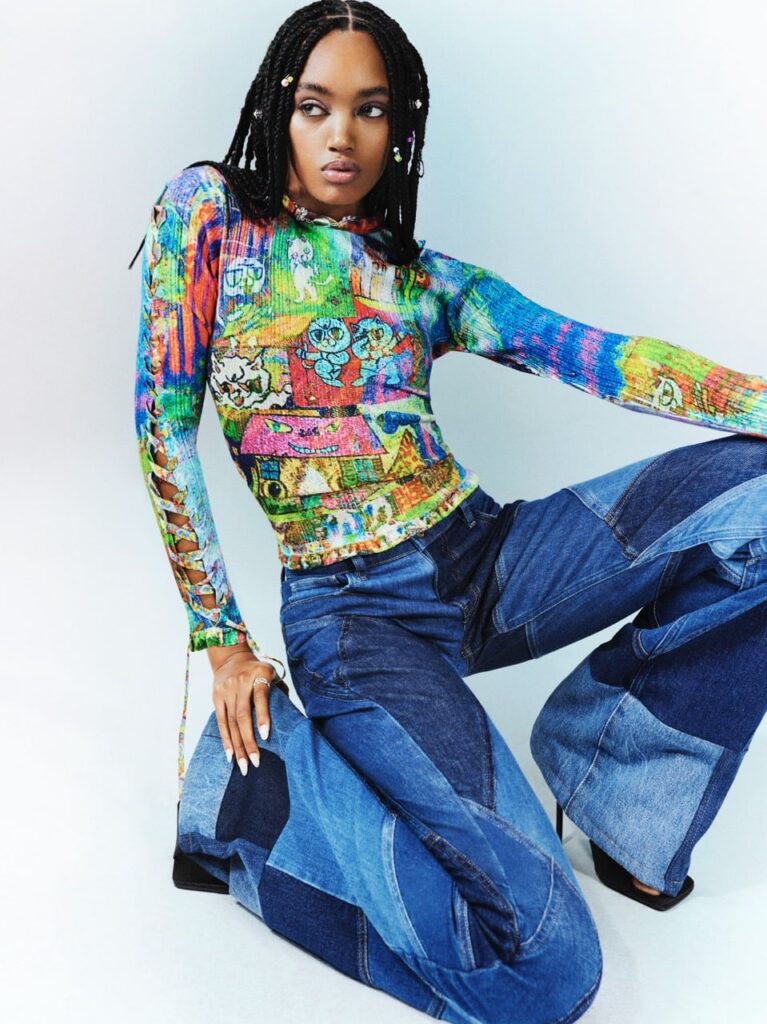 en patch de denim para potenciar la estética Y2K de la propuesta.