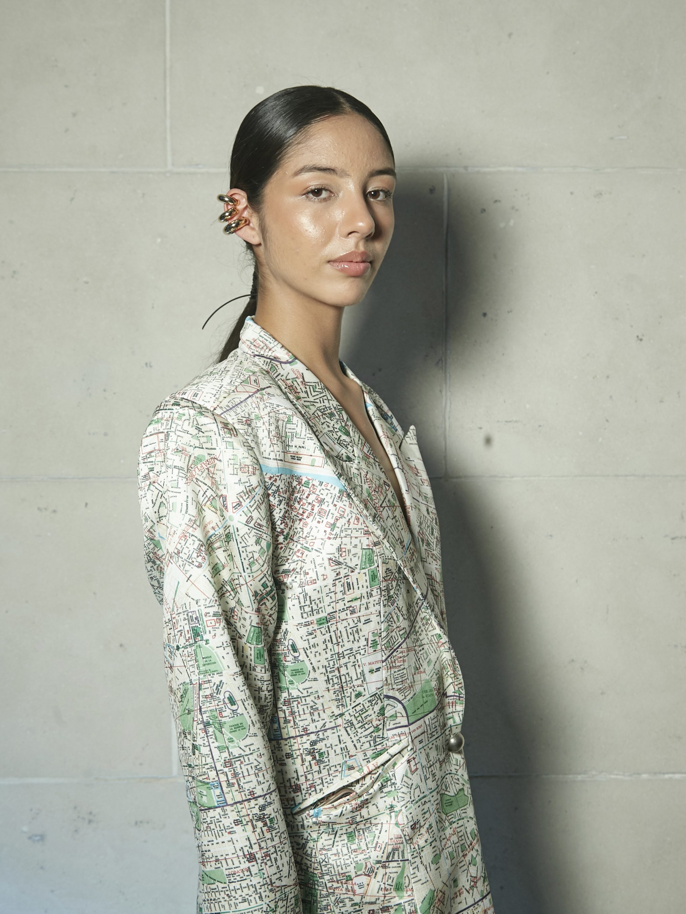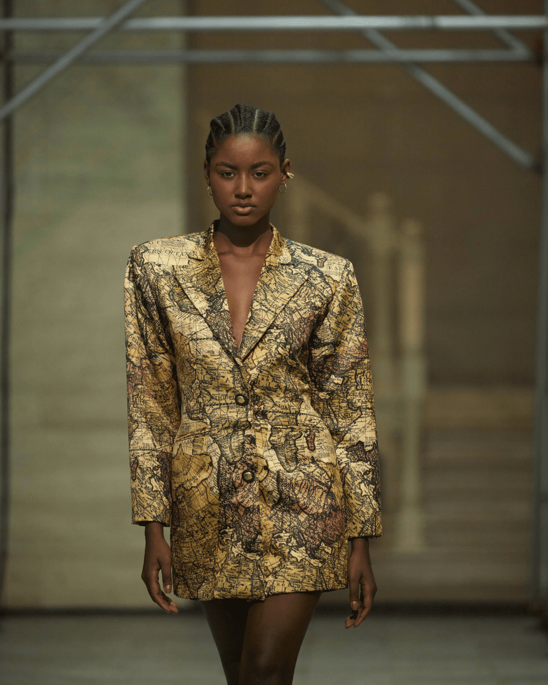 La colección Fall-Winter ’25, «Time Traveler», es un viaje a través del tiempo y el espacio. Parte de la uniónde los mapas de Lima Metropolitana de 1994 y de la creación de mosaicos digitales del mapa mundi de 1725, generando una dualidad visual que invita a explorar diferentes territorios y épocas. Pero este viaje no es solo geográfico, sino también cultural y emocional.