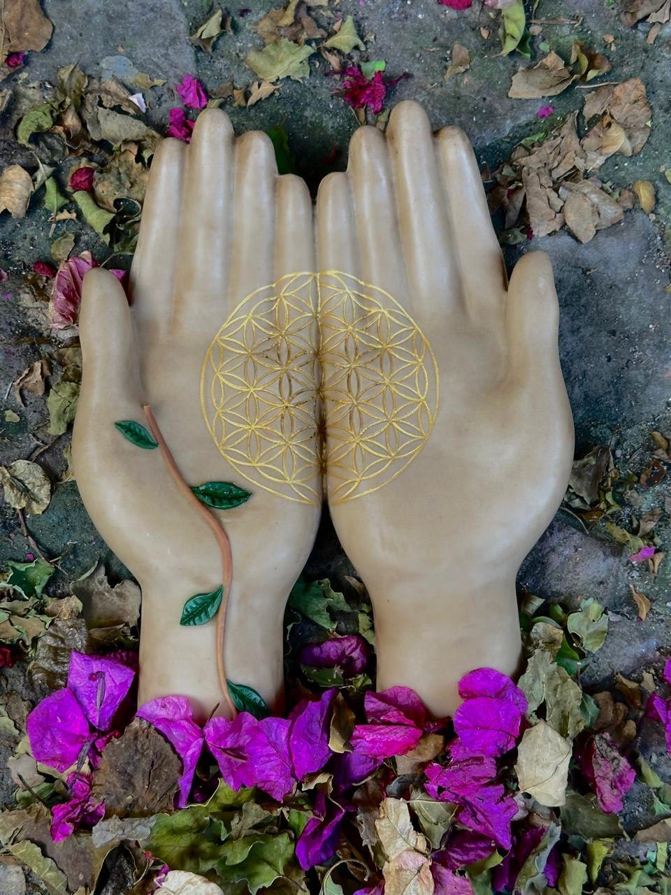 Los visitantes se encontrarán con un recorrido emocional y visual por la caída, el proceso y la redención, hasta la luz que emerge de la herida. Alas, corazones, constelaciones son algunos de los elementos que pueblan este universo onírico y transformador, y una obra que se llama Ananda Kintsugi, que representa como las grietas fueron resanadas al mismo estilo del kintsugi japonés.