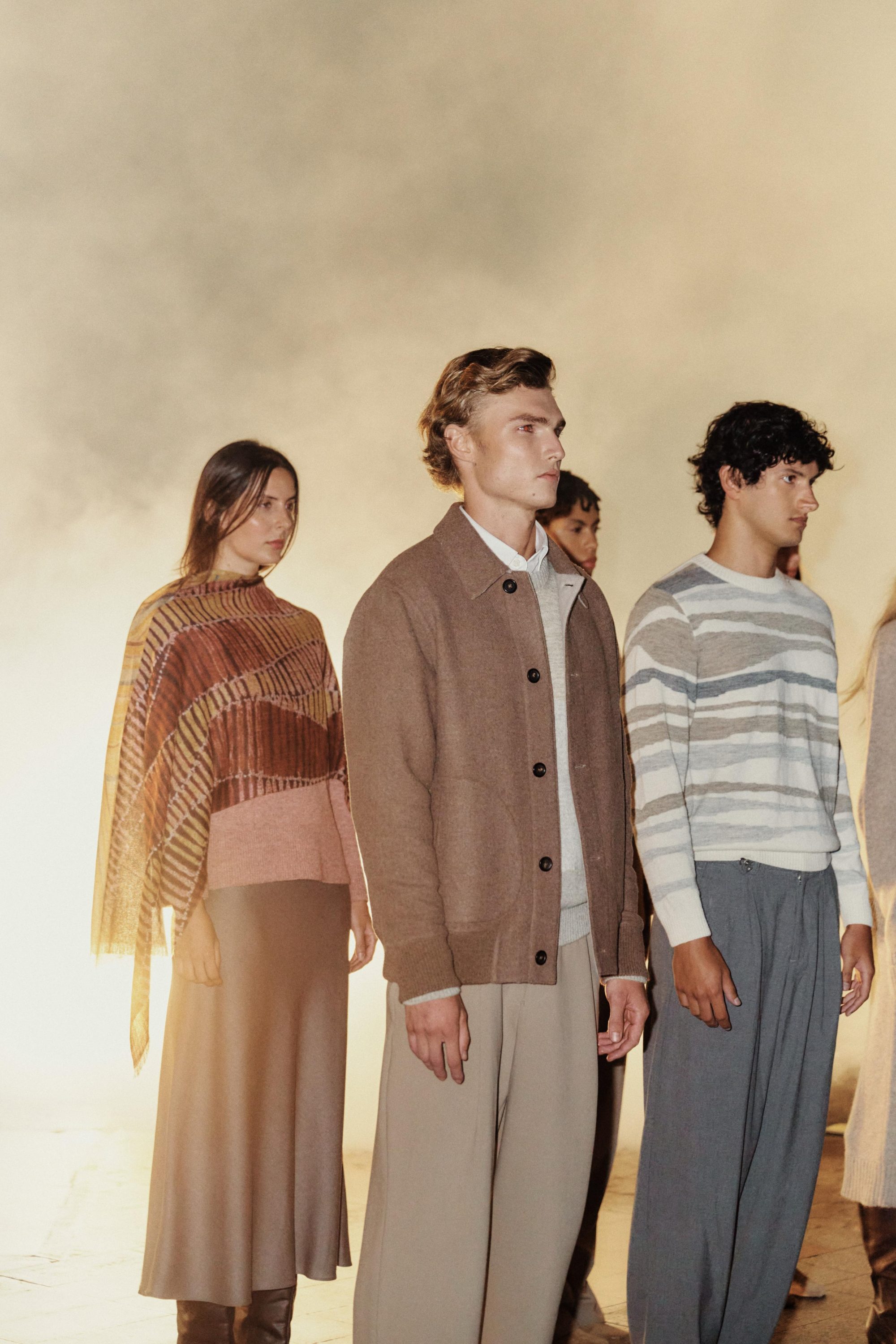 Between The Lines Fall Winter 2025 se inspira en lo que no siempre se ve, pero siempre se siente. Su paleta de colores fusiona los tonos naturales de la fibra con matices intensos y vibrantes, y sus siluetas contemporáneas rinden homenaje a las técnicas tradicionales andinas. Esta colección representa el equilibrio entre lo estructurado y lo fluido, lo clásico y lo experimental.