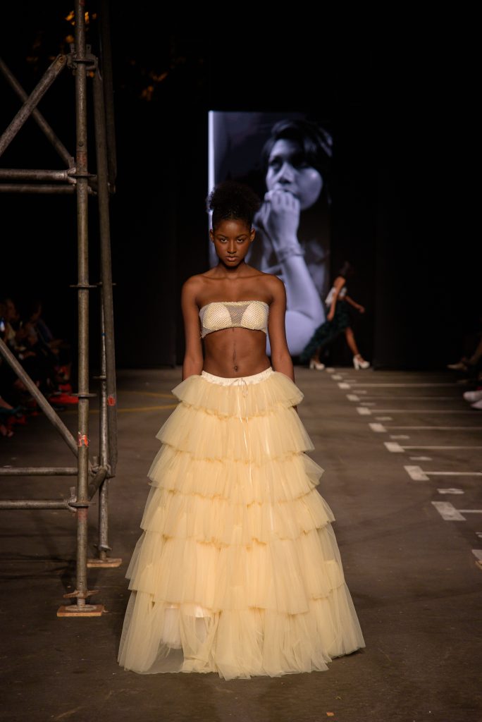 “Las piezas están diseñadas para que quienes las usen se sientan libres, cómodas, femeninas y empoderadas”, enfatiza Coloma. Su cliente ideal es una mujer arriesgada, libre y empoderada que no teme demostrar su individualidad a través de su vestimenta. “Dalum” destaca por su meticuloso trabajo en bordados y volúmenes, incluyendo faldas cubiertas de plumas, un proceso laborioso que resalta en cada prenda. “Tulum tiene una vibra muy alegre, y eso me llevó a ver la brisa e inspirarme en las olas del mar”, agrega la diseñadora.