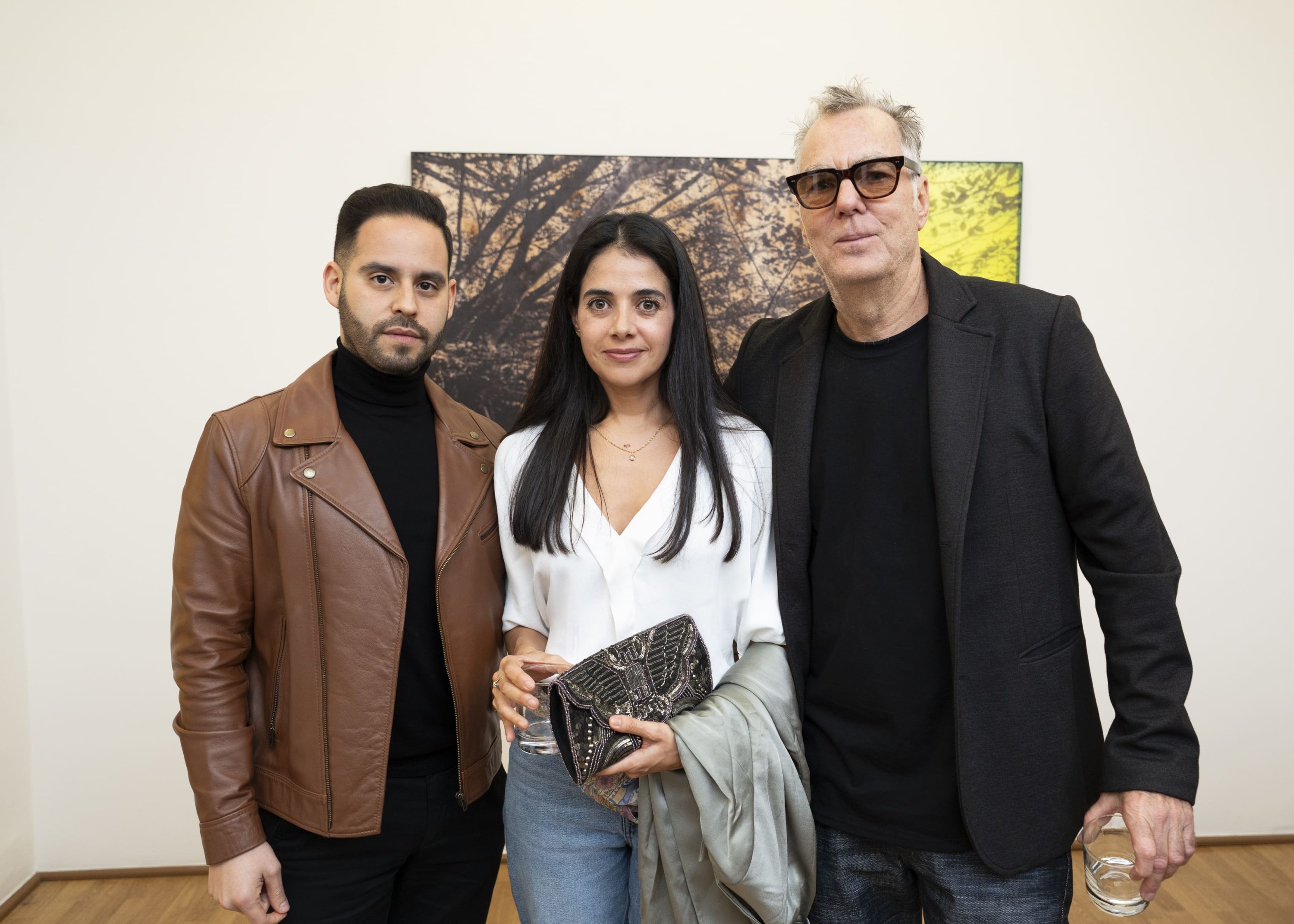 En el corazón de la exposición se encuentran sus dípticos, donde una misma imagen se imprime en soportes distintos, aluminio, acrílico, madera, espejo o fibras recicladas. Este gesto genera rupturas visuales que evocan tanto la fragilidad del material como las fracturas ambientales que atraviesan el presente.