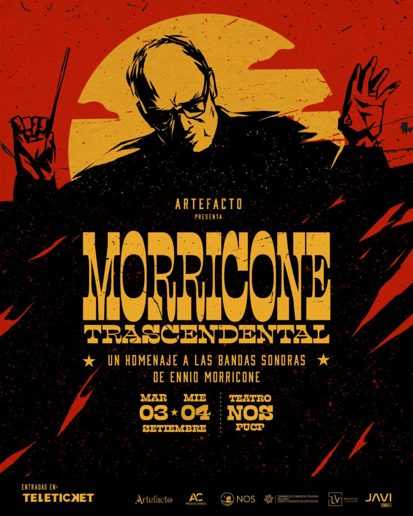 Es por ello que los próximos 3 y 4 de setiembre la realizadora de proyectos escénicos Artefacto, en coproducción con AC Producciones y con el teatro NOS PUCP, llevará a cabo “Morricone Trascendental”, el primer homenaje de gran formato hecho en el Perú a la música de Ennio Morricone, presente en las bandas sonoras de más de quinientas películas y series de televisión y que, actualmente cuenta con más de tres millones de oyentes mensuales en Spotify.