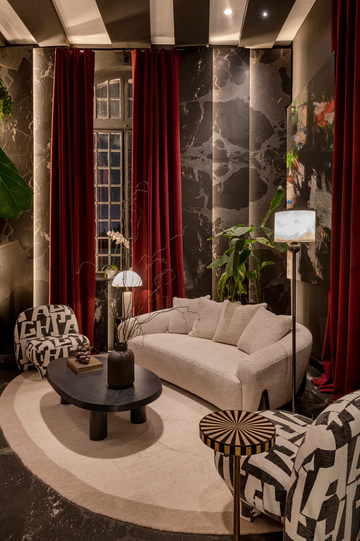 «Nodo» es la materialización de una reflexión profunda: empezar nuevamente desde el pensamiento colectivo, complementando saberes para coexistir en armonía. En este espacio, Nicole propone un flujo orgánico, una atmósfera de calma y sofisticación donde cada mueble, textura y luz contribuye a la idea del «buen vivir». El mobiliario ha sido cuidadosamente seleccionado desde el portafolio de Eichholtz para reflejar el concepto sin recargar el espacio, otorgando un propósito a cada pieza y logrando que se complementen entre sí.