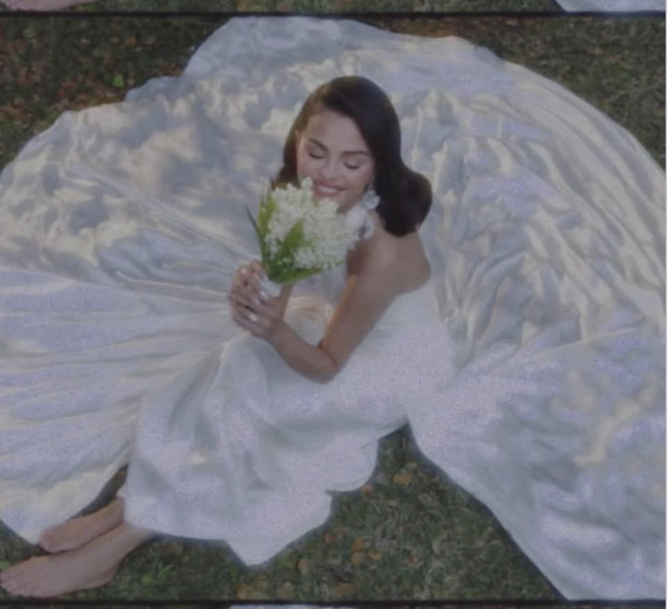 Para la ocasión, Selena eligió dos vestidos hechos a medida por Ralph Lauren, cada uno con su carácter y estilo distintivo. El primero fue un vestido de satín halter-neck con corset estructurado, detalles florales y una caída suave que combinaba romanticismo clásico con elegancia moderna.