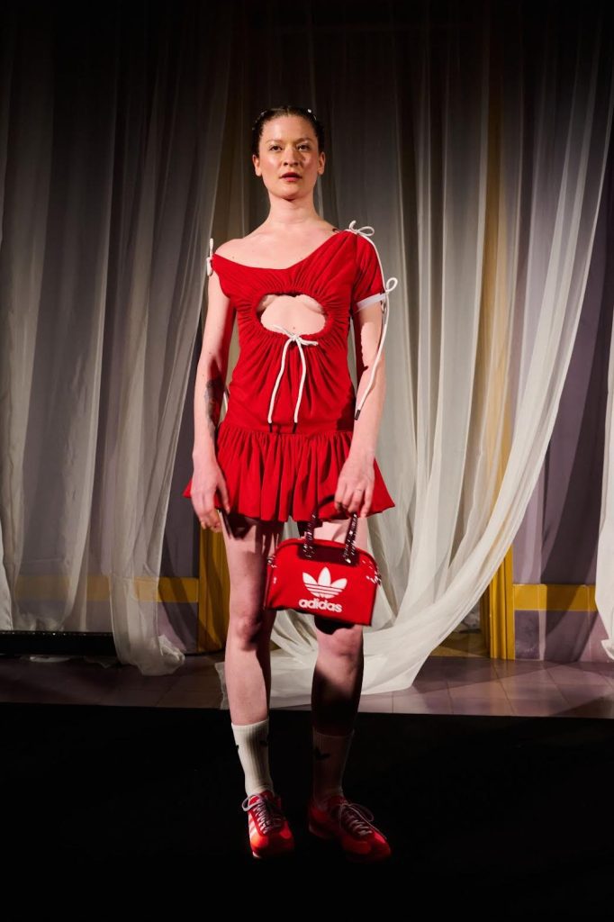 Célebre por sus diseños de alta costura, Noe Bernacelli trajo su característico toque de elegancia, creando piezas que se integran perfectamente con la estética retro de las zapatillas y que combinan lujo moderno con comodidad y funcionalidad.