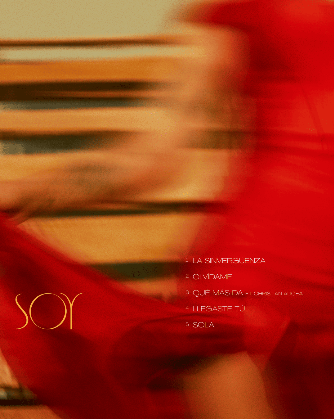 El primer sencillo de SOY, se llama LA SINVERGÜENZA y es una canción que trata sobre una chica que cansada de tantos desmanes de su pareja decide salir a la calle a dejarse llevar dejando el recato y el pudor en casa; una composición de Daniela junto a Motiff, Pipo Salas y Judy Buendía, que se escribió en febrero del 2023 y que econtro dos años despues su momento de ver la luz.