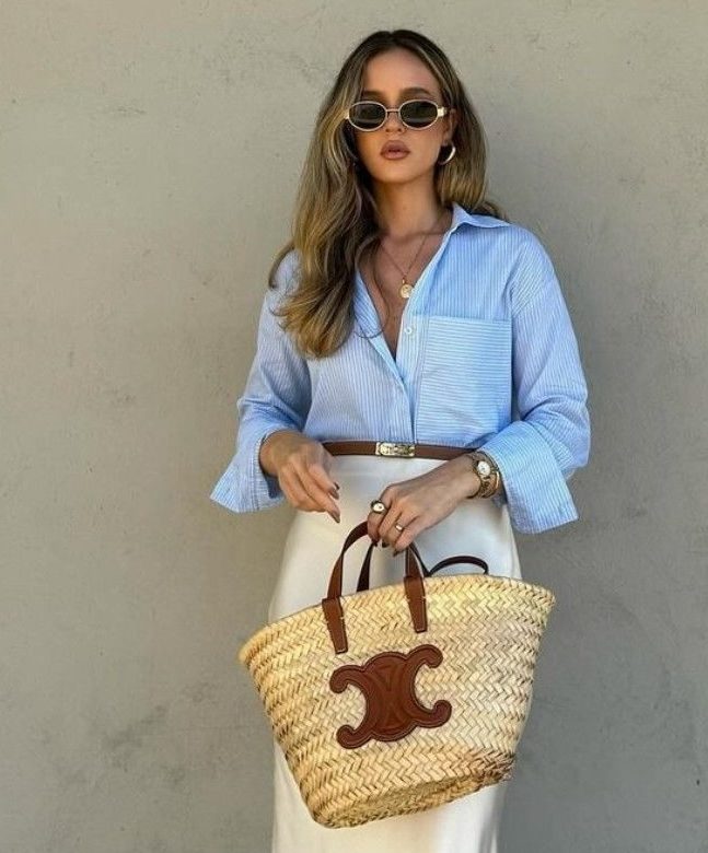 Cartera de paja: Ligero, fresco y atemporal, el bolso de paja es el compañero perfecto para un verano europeo. Aporta un toque natural y chic, combina con todo y es lo suficientemente espacioso para llevar lo esencial durante tus paseos.
